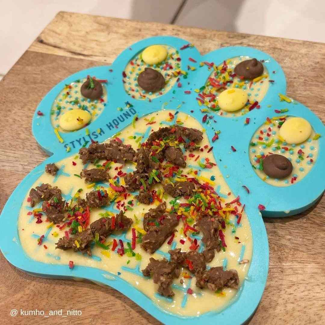 ⭐⭐⭐⭐⭐ "Great boredom buster! Spread some doggy yoghurt, blueberries and tasty treats on the mat with the cute matching spatula, chuck it in the freezer and my Great Dane is occupied for a long-time licking!" - Amy A