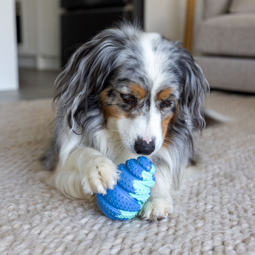 Hercules is just the thing for hours of healthy hound entertainment. This nifty tool can be used for enriching exercise, as a chew toy to chow down on or as a good old fashioned food bowl. Your hound’s teeth and gums will be cleared and cared for whilst they enjoy endless entertainment. Hercules clever design means it’s proven to last longer than other food dispenser toys. Stuff to the brim with your dog’s favourite snacks and treats (pst, visit our website for a full range of tasty recipe ideas)!