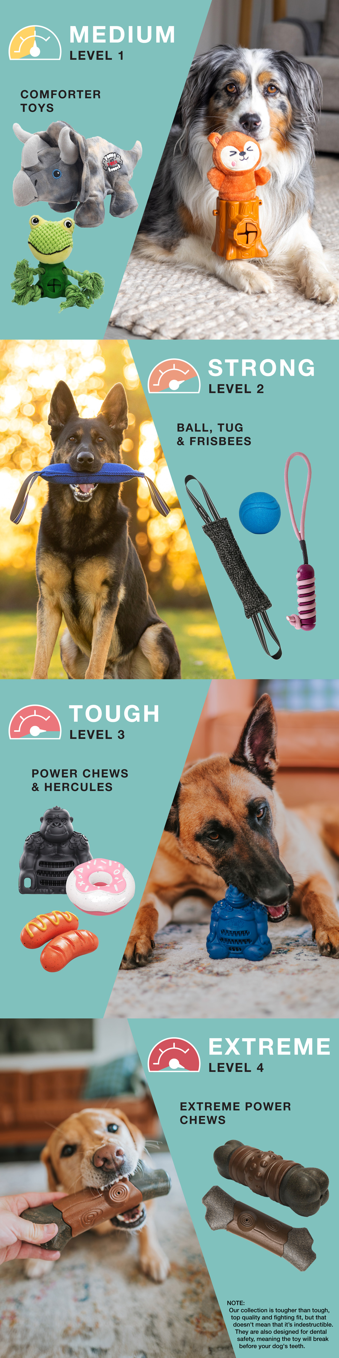 NOTE: We do not stock “indestructible” or plastic nylon dog toys. Based on personal and veterinary experience, these toys can break dogs’ teeth. Our toys are thoughtfully designed to give your dog a fun, safe chewing experience and will breaking before causing dental injury. Always supervise your dog whilst playing with toys. Inspect and remove any loose pieces before continued use. Due to hygiene reasons, we do not offer refunds.