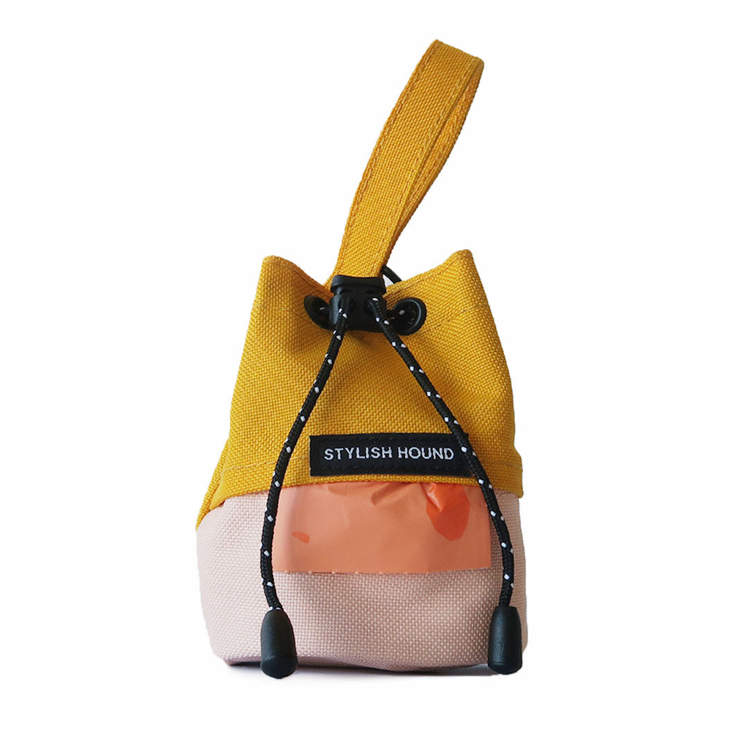 Keep your essentials - keys, poop bag, treats, slobbery ball for your outings in our nifty Mini Drawstring Satchel. Perfect for wet or dry treats, or even a slobbery ball, the Mini Drawstring Satchel has a wipeable lining that makes it easy to keep clean. And for extra convenience we even added a poop bag dispenser in the front pocket for any messes your dog makes while out and about.